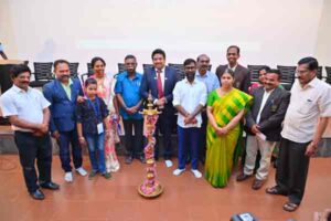 இதன் துவக்க விழா கல்லூரி கலையரங்கத்தில் நடந்தது. ரமேஷ் ரத்னகுமார் தலைமையில் வருமான வரித்துறை ஆணையாளர் நந்தகுமார் கலந்து கொண்டு குத்து விளக்கு ஏற்றி தொடங்கி வைத்து சிறப்புரை ஆற்றினார். நிகழ்ச்சியில் அமெரிக்காவில் இருந்து களரி அடிமுறை கூட்டமைப்பு இணை இயக்குனர் பாரத் ராமமூர்த்தி இணையம் வழியாக பேசினார். நிகழ்ச்சியில் மருத்துவர் பரமேஸ்வரன், பாரதியார் பல்கலைக்கழக பதிவாளர் முனைவர் முருகவேல், தொழிலதிபர் பழனிசாமி, கல்லூரி முதல்வர் முனைவர் கீதா, இணை இயக்குனர் லதா, எழுத்தாளர் முத்தாலங்குறிச்சி காமராசு, உலக களரி அடிமுறை கூட்டமைப்பு முதன்மை அலுவலர் செந்தில் ராஜ்குமார், முனியசாமி ஆசான், களரி அடிமுறை தலைமை தொடர்பு அதிகாரி அனுராதா களரி அடிமுறை கூட்டமைப்பினரை அறிமுகம் செய்தார். இந்திய களரி அடிமுறை கூட்டமைப்பு தலைவர் வனிதா நன்றி கூறினார்