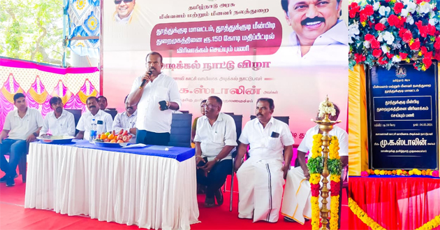 தமிழக அரசின் மீன்வளம் மற்றும் மீனவர் நலத்துறை சார்பில், தூத்துக்குடி மாவட்ட மீனவர்களின் நீண்ட நாள் கோரிக்கையை ஏற்று, தூத்துக்குடி மீன்பிடி துறைமுகத்தை ரூ.150 கோடி மதிப்பீட்டில் விரிவாக்கம் செய்யும் பணிக்கான அடிக்கல் நாட்டு விழா இன்று (04.03.2026) நடைபெற்றது.