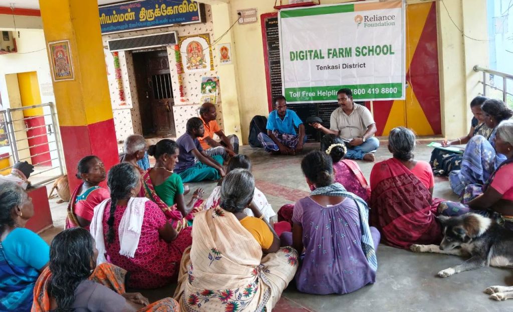 ரிலையன்ஸ் அறக்கட்டளை தென்காசி மாவட்டத்தில் பண்ணைப்பள்ளி திட்டத்தின் மூலம் மக்காச்சோளம் மற்றும் உளுந்து பயிரிடும் விவசாயிகளுக்கு நிலத்தை பண்படுத்தல் முதல் அறுவடை வரை உள்ள தொழில்நுட்பங்களை பல்வேறு விழிப்புணர்வு கருவிகள் மூலம் தெரிவித்துவருகிறது. தென்காசி மாவட்டம் திருவேங்கடம் தாலுகாவில் உள்ள சிவகாமியாபுரம் கிராமத்தில் உள்ள விவசாயிகள் கால்நடை வளர்ப்பையும் முக்கிய வாழ்வாதாரமாகவும் செய்து வருகிறார்கள். விவசாயிகளுடன் கலந்துரையாடல் நடத்திய பொது நோய் மேலாண்மை குறித்த விழிப்புணர்வு தேவைப்படுவது கண்டுபிடிக்கப்பட்டது. நோய் தாக்கம் அடிக்கடி ஏற்படுவதால் விவசாயிகளுக்கு பெரும் இழப்பு ஏற்படுகிறது. இதனை கருத்தில் கொண்டு ஆடியோ கான்பிரான்ஸ் முலம் கால்நடை நலம் மற்றும் நோய் மேலாண்மை குறித்து விழிப்புணர்வு நிகழ்ச்சி நடத்தப்பட்டது. குருவிகுளம் கால்நடை மருந்தக கால்நடை மருத்துவர் நிஷாந்த் குமார் அவர்கள் கறவை மாடுகள், வெள்ளாடுகள், செம்மரி ஆடுகள், மற்றும் கோழிகளை கோடைகாலங்களில் தாக்கும் நோய்கள் குறித்தும் மற்றும் அவைகளை பாதுகாக்கும் முறைகள் குறித்தும் விளக்கம் அளித்தார். மேலும் குடற்புழு நீக்க மருந்து கொடுப்பதின் அவசியம், மடிவீக்க நோயிலிருந்து கறவை மாடுகளை பாதுகாப்பது, உண்ணிகளை கட்டுப்படுத்துதல், உணவு மேலாண்மை, தடுப்பு ஊசி போடுவதின் அவசியம் குறித்து விளக்கம் அளித்தார். இதில் சுமார் 25 கால்நடை விவசாயிகள் கலந்து கொண்டு பயன்பெற்றனர்.