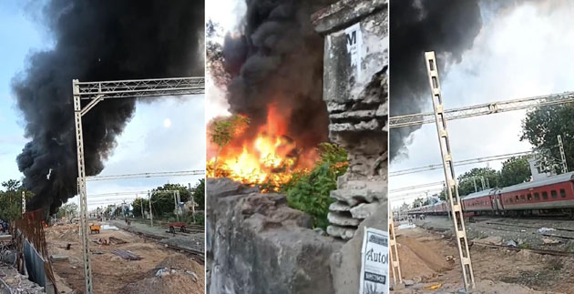 தூத்துக்குடி 1ஆம் ரயில்வே கேட் மற்றும் 2ஆம் ரயில்வே கேட் ஆகியவற்றுக்கு இடையே ரயில்வே தண்டவாள பராமரிப்பு பணிகள் நடைபெற்று வருகின்றன. இப்பணிகளில் எஞ்சிய குப்பைகளுக்கு ஊழியர்கள் சிலா் தீவைத்ததாக கூறப்படுகிறது. அந்தக் கழிவுகளில் மரக்கட்டைகள், காப்பா் வயா் கழிவுகள், பிளாஸ்டிக் ஆகியவை இருந்ததால், தீ மள மளவென பரவி வேகமாக எரியத் தொடங்கியது.