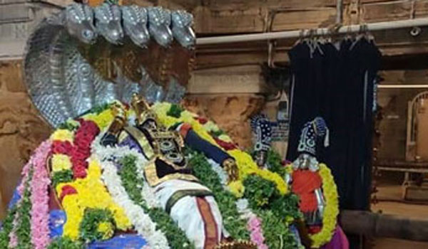 தூத்துக்குடி மாவட்டத்தில் உள்ள நவ திருப்பதி கோயில்களில் வைகுண்ட ஏகாதசி திருவிழாவை முன்னிட்டு சயன கோலத்தில் பெருமாள் தரிசனம் அளித்தார்.