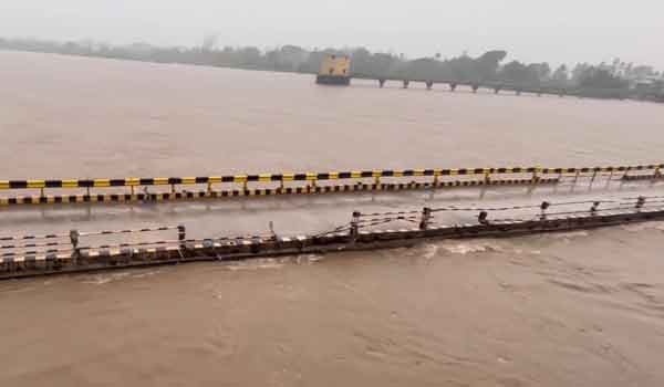 தாமிரபரணி ஆற்றில் வெள்ளப்பெருக்கு. முக்காணி ஆற்றுப்பாலத்தை தொட்டுச் செல்லும் வெள்ள நீர். போக்குவரத்து நிறுத்தம்.