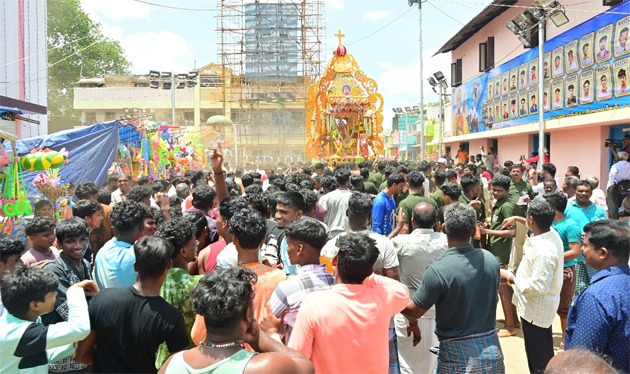 ஸ்ரீவைகுண்டம் புனித சந்தியாகப்பர் ஆலயத் திருவிழாவில் நேற்று தேர்பவனி கோலாகலமாக நடந்தது. இதில் ஆயிரக்கணக்கான கிறிஸ்தவர்கள் கலந்து கொண்டனர்.